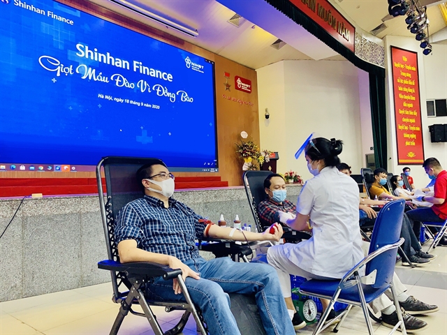 Employees and sales agents of Shinhan Vietnam Finance Company Limited have donated nearly 100 units of blood in Hà Nội in response to a call for blood donation by the National Institute of Haematology and Blood Transfusion amid a severe shortage.