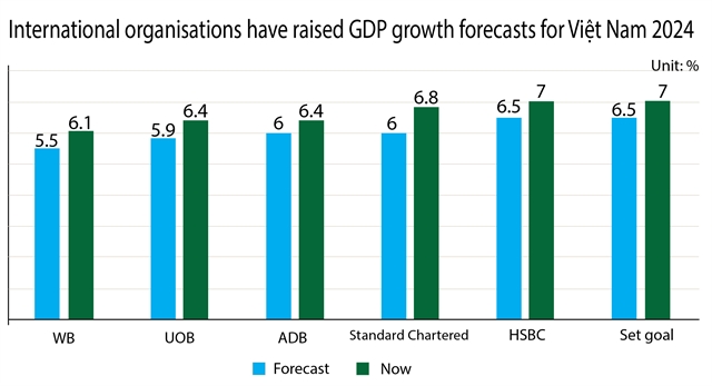 Meanwhile, Standard Chartered Bank revised up its forecast for Việt Nam’s 2024 GDP growth to 6.8 per cent from the previous 6 per cent, reflecting the stronger-than-expected expansion in the third quarter of the year. In its recent macro-economic updates about Việt Nam, the bank said growth was expected to moderate to 6.9 per cent in the fourth quarter. The bank maintained its 2025 forecast at 6.7 per cent, with projected growth of 7.5 per cent year-on-year in the first half and 6.1 per cent year-on-year in the second half.