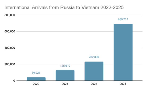 The rapid re-ignition of charter routes from Moscow and other major Russian cities to hubs like Cam Ranh and Phú Quốc provided the necessary "bridge" for this surge.