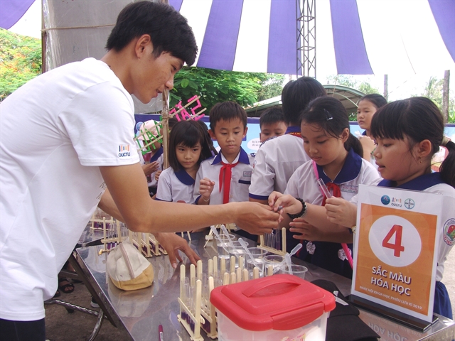 The opportunity to get hands-on experience and enrich their science knowledge was provided to hundreds of students and teachers from five elementary schools in Ben Luc District in the Cuu Long (Mekong) Delta province of Long An through a science festival titled “Khoa hoc Phieu luu ky” (A Science Adventure).