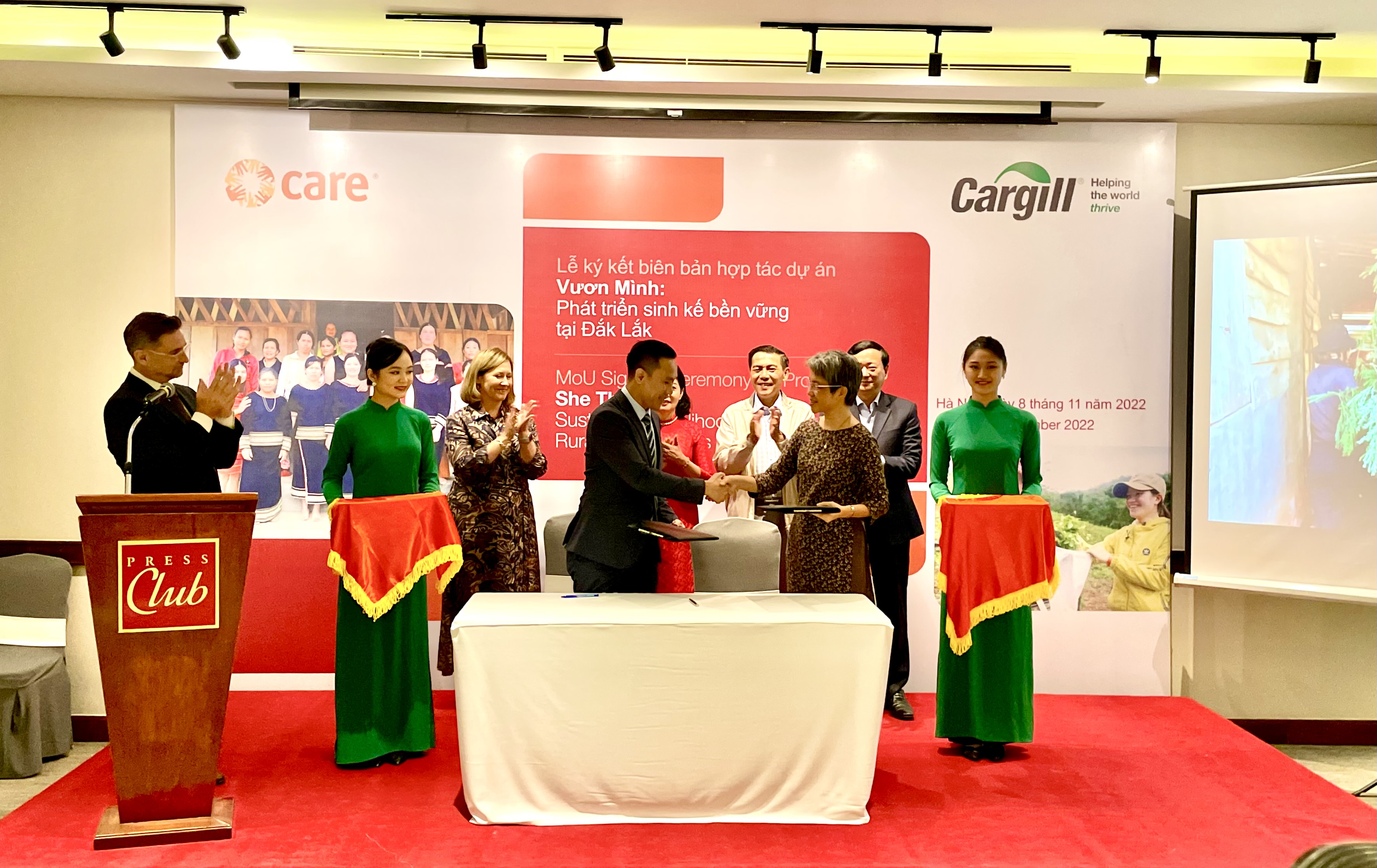 Cargill and CARE International signed a Memorandum of Understanding for ‘She Thrives’, a programme to improve sustainable agriculture for rural communities in the central highland province of Dak Lak in Ha Noi on November 8.