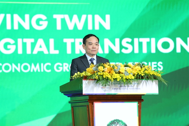 Deputy Prime Minister Tran Luu Quang speaking at the Viet Nam Connect Forum on green growth and digital transition for central and central highlands region. — Photo courtesy of Vietnam Economic Times