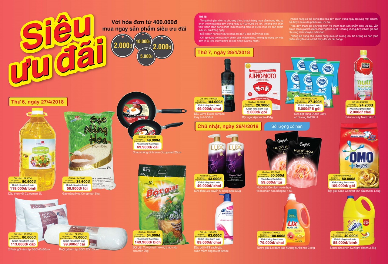 Co.opmart supermarkets will collaborate with many brands to offer discounts on a variety of essential products like cooking oils, shower gels, detergents, and milk.