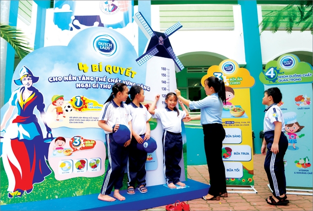 Dutch Lady has a five-year agreement with the Ministry of Education and Training to help improve primary school students’ awareness of nutrition and physical health, set up 1,250 booths to disseminate information about nutrition and build playgrounds in 65 schools.