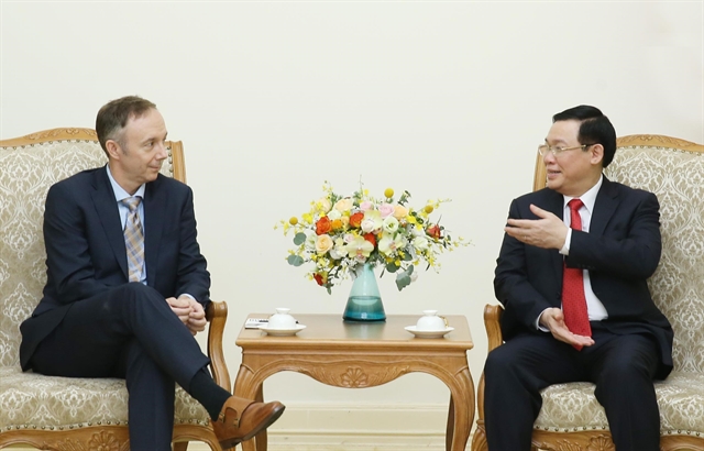 Deputy Prime Minister Vuong Dinh Hue hosted a reception for Nike Vice President Chris Helzer in Ha Noi on June 10.