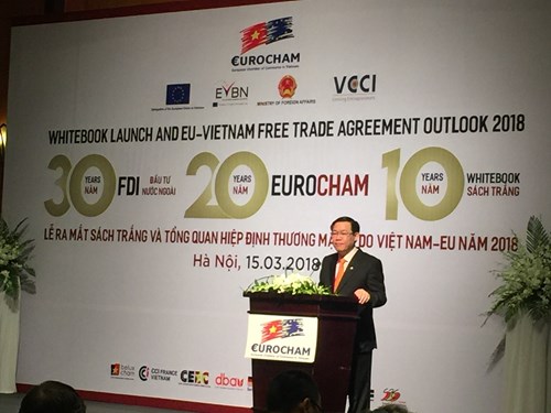 The European Chamber of Commerce in Vietnam (EuroCham) announced the publication of the 2018 White Book on Trade and Investment Issues and Recommendations yesterday, in cooperation with the Vietnam Chamber of Commerce and Industry (VCCI).