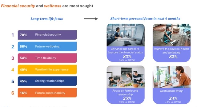 Based on responses from 1,200 Vietnamese consumers in HCM City and Hà Nội, NIQ found that 70 per cent of consumers prioritise financial security, while 66 per cent focus on securing their future well-being.