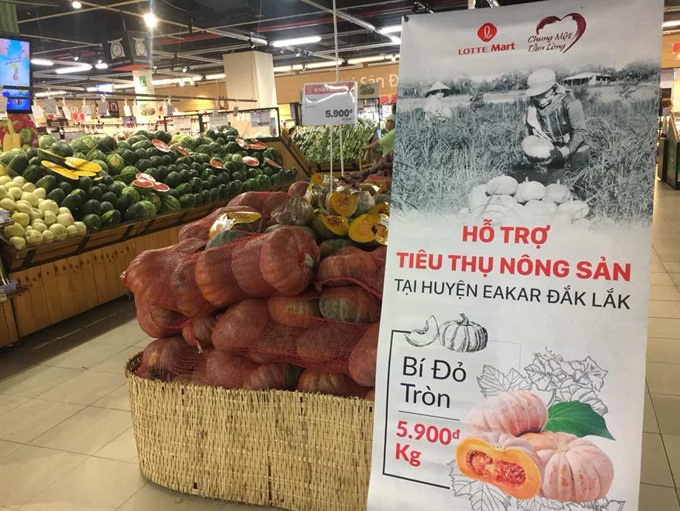 Korean supermarket chain Lotte Mart has bought more than 10 tonnes of pumpkins and five tonnes of watermelons from distressed farmers facing declining prices because of a bumper crop in Dak Lak and Quang Nam provinces.