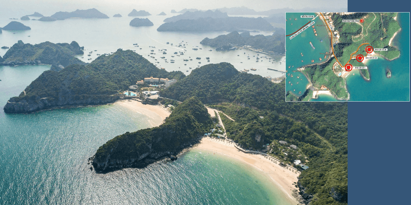The resort, with a view of Lan Ha Bay, is located on Cat Co 1 and Cat Co 2 beaches.