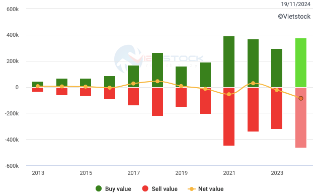 Since the beginning of 2024, foreign investors have net sold over VNĐ85 trillion (over US$3.3 billion) on the Hồ Chí Minh Stock Exchange (HoSE), marking a record figure in its 24-year history.