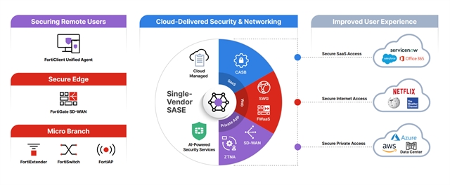 Universal SASE uses the same FortiOS operating system and AI-powered security services as its secure SD-WAN and cloud-delivered security service edge (SSE) solutions.
