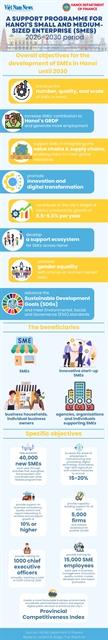 SMEs are the backbone of the capital’s economy, accounting for 98.2 per cent of all registered businesses. SMEs provide jobs for 55.1 per cent of the workforce, and contribute more than 40 per cent to the city’s GRDP. — VNS