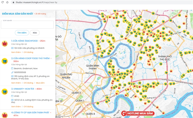 Built by the HCM City Geographical Information System Application Centre, one of them updates information about more than 400 markets, supermarkets and other businesses to enable people to shop. It can inform users what the businesses supply and recommend those closest to users’ locations and travel routes to reach the place.