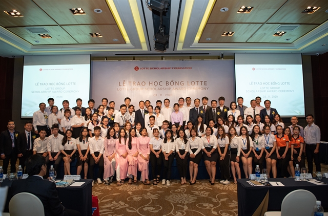 Sixty outstanding students at 11 HCM City universities received scholarships worth US$400 each from the Lotte Foundation at a ceremony on Tuesday.