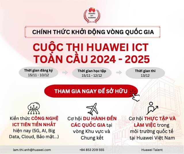 Huawei Vietnam has officially launched the ICT Competition 2024-25, offering students the chance to enhance their information and communication technology (ICT) skills in cloud, network and computing tracks.