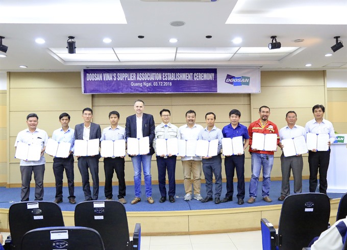 The long-term partnership agreement, which was signed on December 3, will share technical, management and operational procedures among Doosan Vina and Vietnamese industrial suppliers working in the fields of electrical, mechanical, steel, construction and engineering.