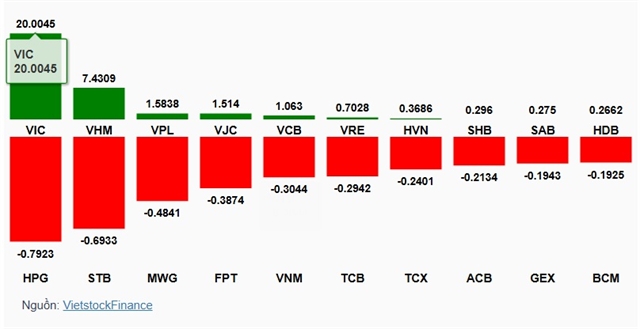 The rally was driven largely by heavyweight property stocks, with Vingroup-related shares leading the market. Gains in VIC (Vingroup), Vinhomes (VHM) and other large-cap names contributed more than 30 points to the index, offsetting losses in banking and technology stocks such as steelmaking giant Hòa Phát Group (HPG), Sacombank (STB) and IT corporation FPT.