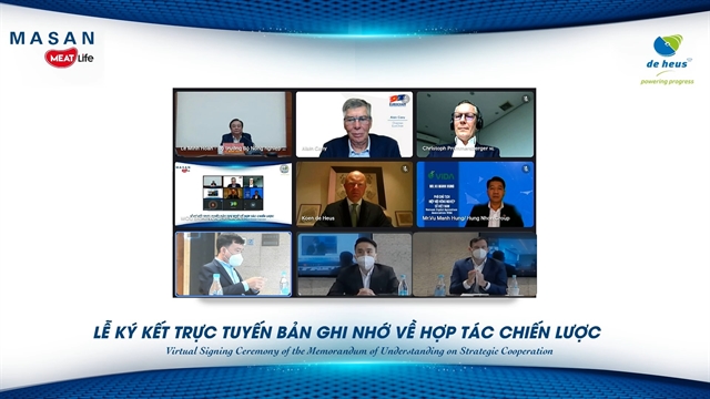 The virtual signing ceremony saw the presence of Minister of Agriculture and Rural Development Le Minh Hoan, Christoph Prommersberger, charge d'affaires at the Netherlands embassy of in Viet Nam, Alain Cany, chairman of the European Chamber of Commerce in Viet Nam, Dr Nguyen Dang Quang, chairman of Masan Group, and other executives from Masan Group, Masan MEATLife Corporation, Royal De Heus, and De Heus Vietnam.