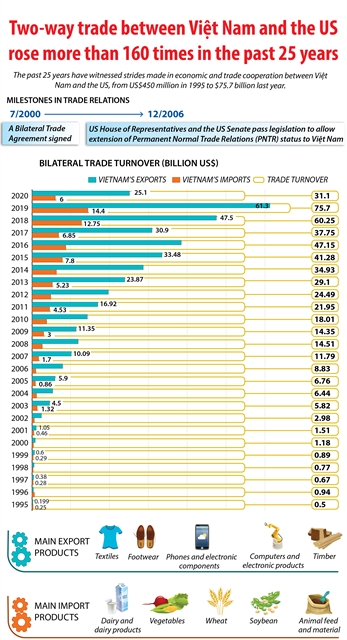 The total value of Viet Nam's exports to the US accounts for about 25 per cent of Viet Nam's total goods exports.