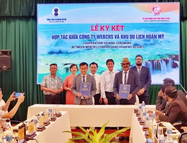 At the meeting, India's WebCRSTravel and Ninh Thuận provincial Tourism Association and Hoàn Mỹ Resort signed a Memorandum of Understanding (MoU) on their cooperation, paving the way for tourism development opportunities for tourism businesses and the two localities.