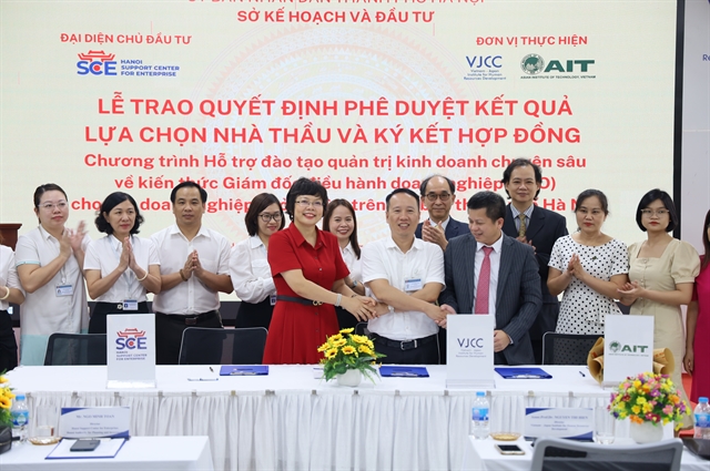 The Ha Noi Business Support Centre under the municipal Department of Investment and Planning, the Asian Institute of Technology in Viet Nam (AIT Vietnam) and the Viet Nam-Japan Institute for Human Resource Development (VJCC) on Wednesday signed an agreement for a “Supporting programme for intensive business administration training on knowledge for CEOs of small and medium enterprises (SMEs) in the city."