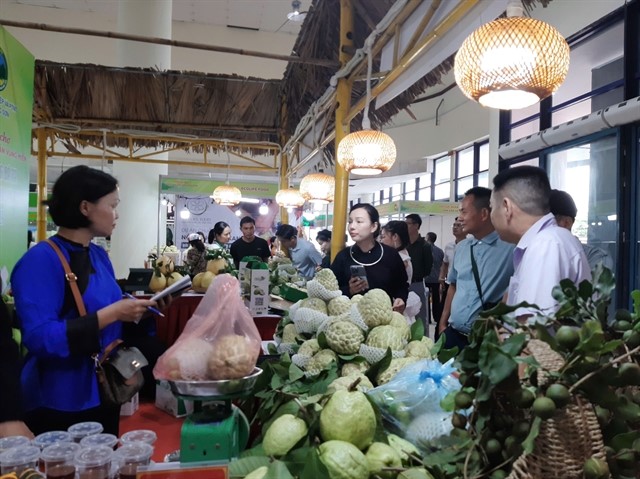 A diversity of farm produces was on display, including Chi Năng custard apples, star anise, dried macadamia nuts, Bảo Lâm seedless persimmon, Vành Khuyên Văn Lẵng persimmon and Tràng Định black jelly from Lạng Sơn Province, together with other agro-forestry-fishery products which are produced organically and ecologically and products from One-Community-One Product programme.