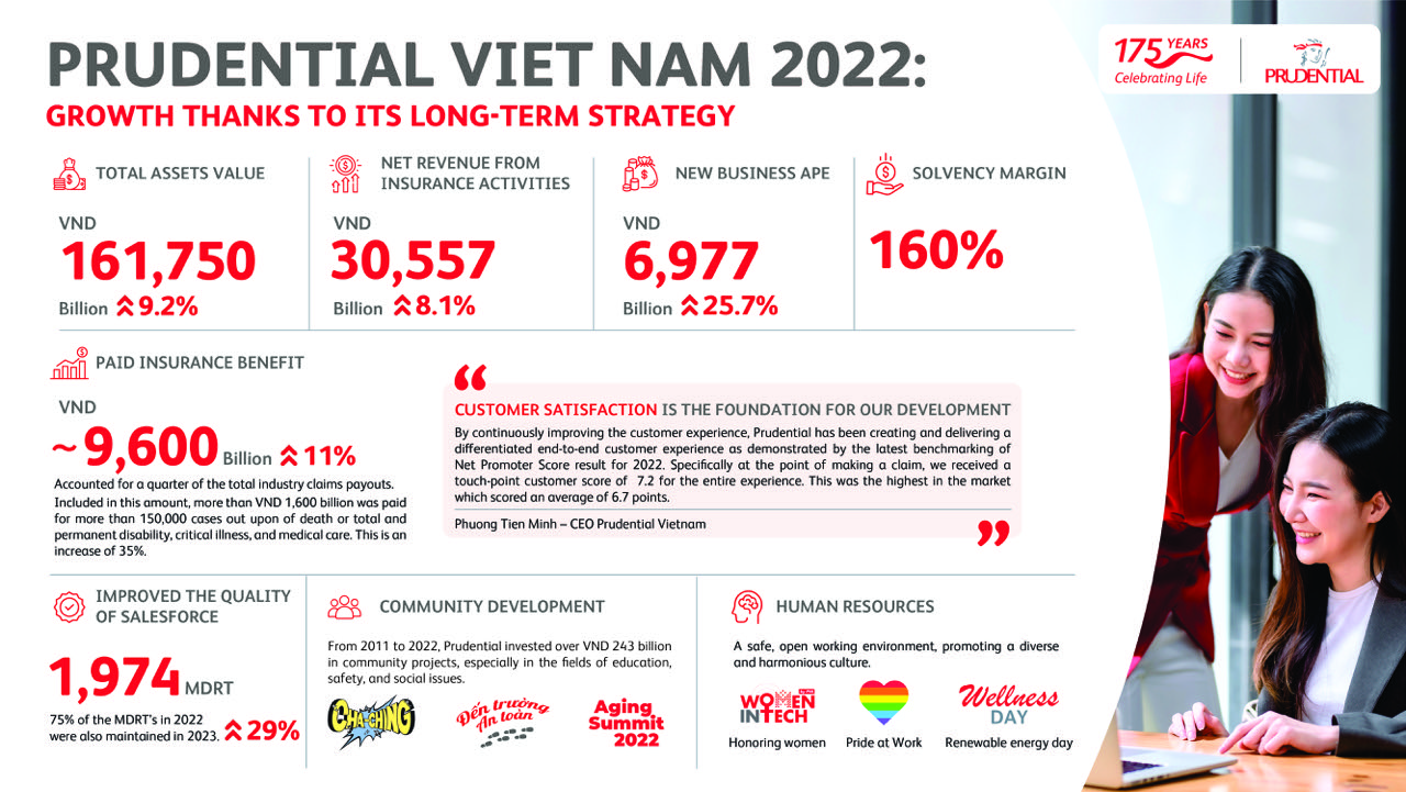 Prudential fulfilled its commitment to pay out nearly VND9.6 trillion worth of insurance benefits in 2022, up 11 per cent, accounting for a quarter of the total industry claims payouts.