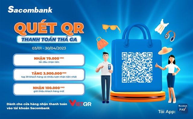 Sacombank is set to roll out a programme called ‘Quet QR – Thanh toan tha ga’ from January 3 to April 30 that offers many fee-related incentives and cash giveaways for customers who receive payments via VietQR code.