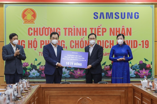 Samsung Vietnam on Monday donated nearly VND11 billion (US$478,000) to the Fatherland Front Committee of Thai Nguyen Province to help in the prevention and control of COVID-19, including ensuring resources to vaccinate people.