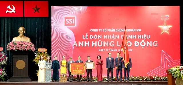 SSI Securities Corporation was conferred the title of ‘Labour Hero in the Doi Moi (Renewal) period’ at a ceremony in HCM City on December 27, making it the first stock brokerage to be so honoured.