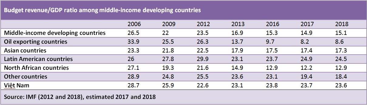 The current proportion of VAT, CIT and import-export tax in Viet Nam’s total budget revenue is higher than in other middle-income developing Asian countries, so the expansion of this tax source is unlikely.