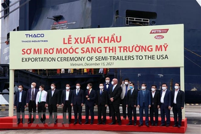 THACO held an exportation ceremony at PTSC Dung Quat Port on December 15 to mark its first shipment of 870 semi-trailers to US market.