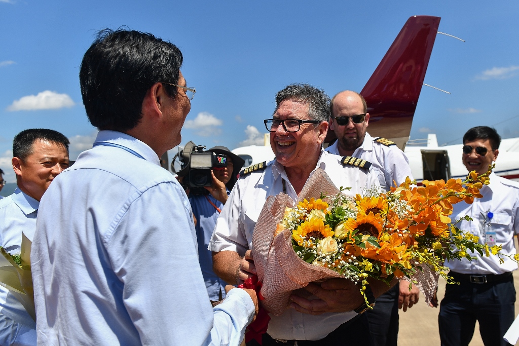 Van Don International Airport received its first flight at 10am today before if officially opens in December.