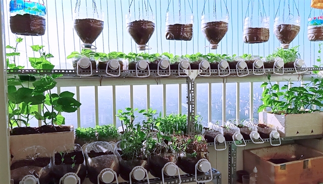 More than a month since Ha Noi implemented social distancing, Khanh Ngoc turned a small balcony in her apartment into a vegetable garden for her family.