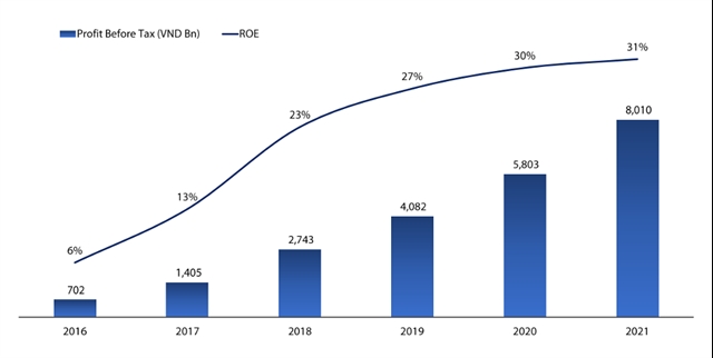 VIB said the recovery of the national economy and credit room extensions for some banks in the year-end period along with the bank's strategy of developing strong digital products and platforms helped make an impressive business breakthrough for the bank after the pandemic so that it continued to lead the industry in terms of operational efficiency with a return on equity ratio of 31 per cent.