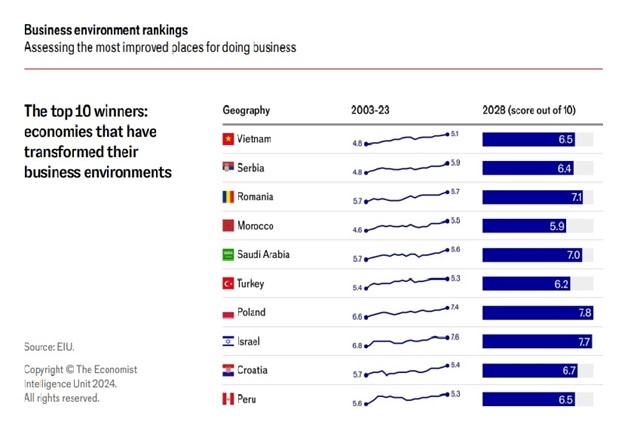 Việt Nam has emerged as the most improved country for business over the past two decades, according to a recent analysis by the Economist Intelligence Unit (EIU).