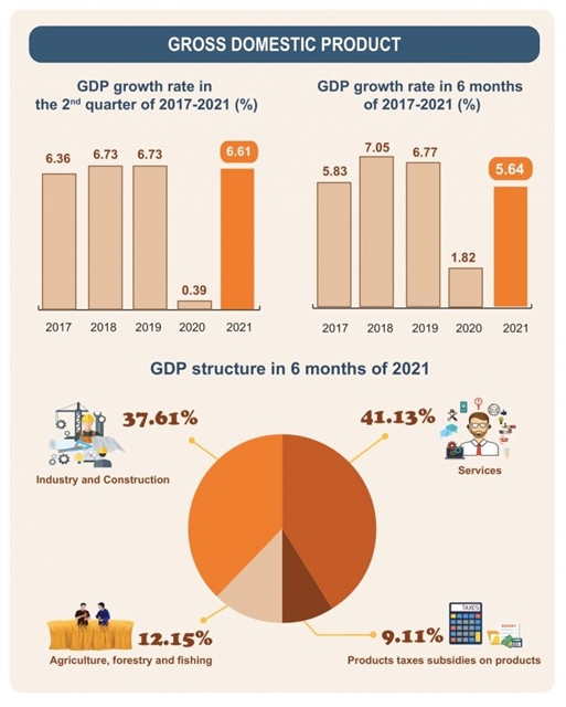 While many places in Viet Nam are struggling to fight the COVID-19 pandemic, the six-month economic picture still delivered optimistic data, showing the recovery process is continuing and partly overshadowing the challenges the country is facing to achieve its dual targets.