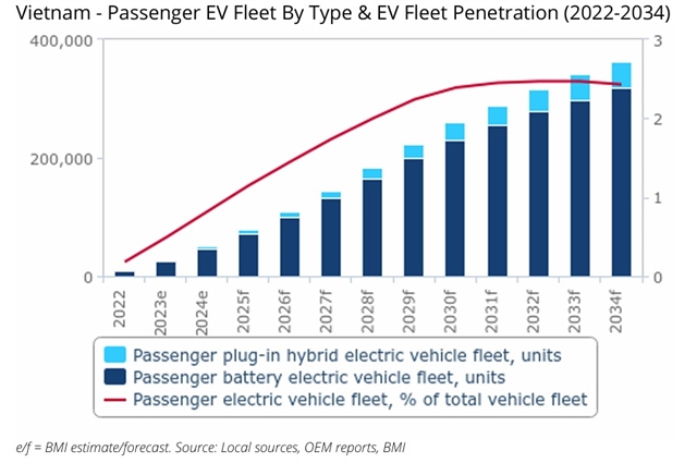 HÀ NỘI — Việt Nam's electric vehicle (EV) market is set for rapid growth over the next decade, driven by fleet electrification, increasing competition and decreasing EV prices, according to the latest report from BMI Country Risk & Industry Research.