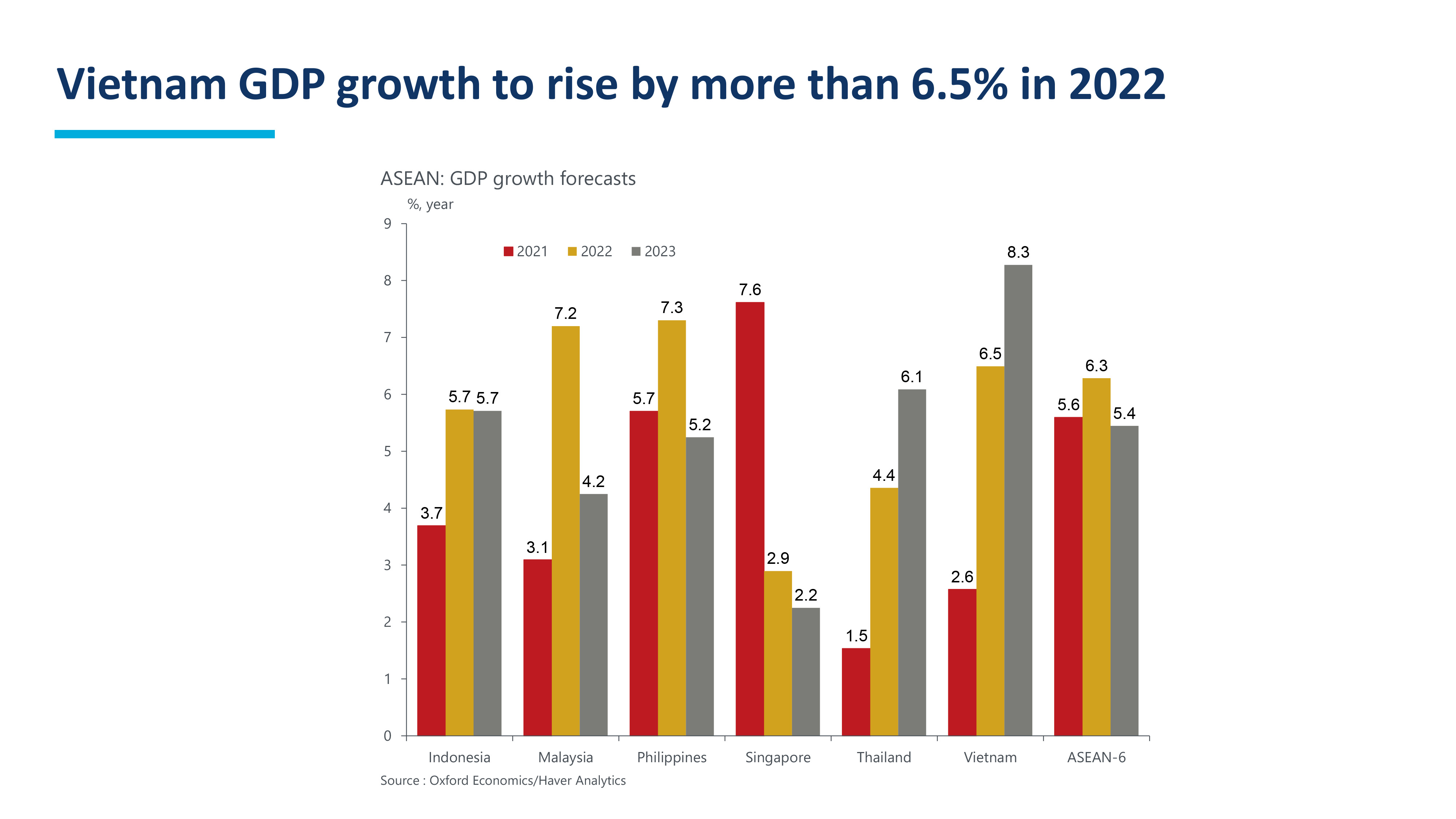 Viet Nam is predicted to have high growth prospects in the region, at more than 6.5 per cent in 2022.