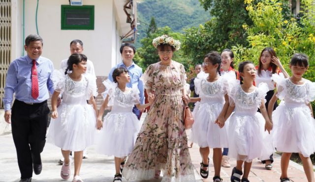 Seven years ago, the female billionaire once paid a visit to Nha Trang SOS Village. She was overjoyed to see everyone here on her return. Together with the children, she expressed heartfelt gratitude to the mothers and aunts for their closeness and affection for orphans and vulnerable children. She also sang songs for them with her lovely and warm voice.