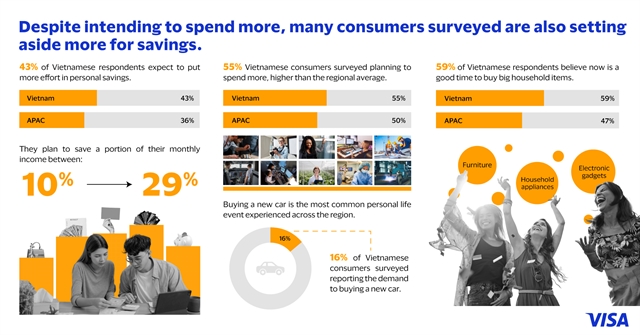 Consumers surveyed also intend to spend more in the region in the next year, with half of Asia Pacific respondents planning to spend more, with those in Việt Nam ranking higher than the regional average at 55 per cent.
