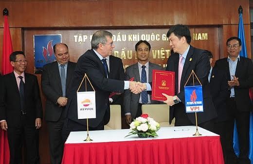 Nguyen Anh Duc, General Director of the Vietnam Petroleum Institute (VPI) and Santiago Quesada Garmendia, Director of exploration and production and gas technology of Spain based Repsol S.A. energy company signed a co-operation deal on behalf of their companies.